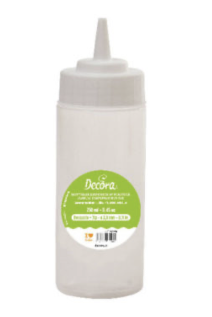 Za pomocą butelki można z łatwością tworzyć dekoracje na tortach, ciastach, ciasteczkach, czekoladkach i wielu innych.