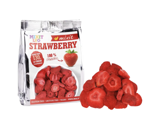 Klasyczne owocowe połączenie liofilizowanej truskawki i banana to świetna zdrowa przekąska, którą możesz podać dziecku, zabrać do szkoły czy pracę lub delektować się podczas oglądania telewizji.