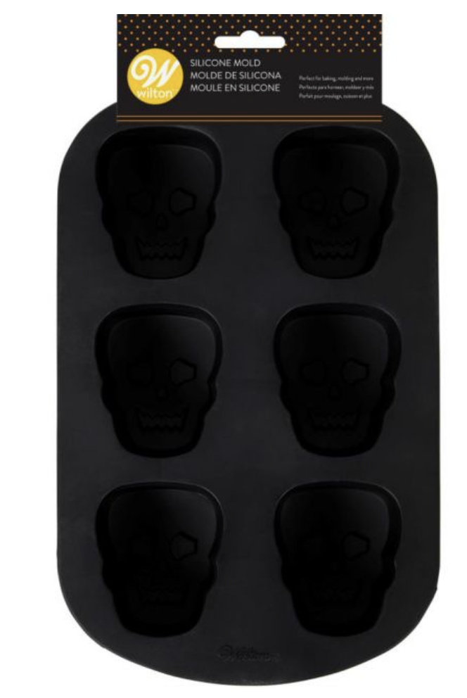 Upiecz zabawne smakołyki na Halloween z czaszką silikonową Wilton.