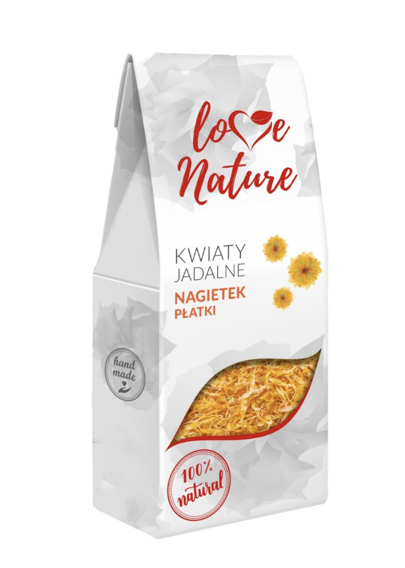 Słonecznie żółte płatki nagietka. Posyp nimi śniadanie (np. musli, smoothie, naleśniki), by zacząć dzień z optymizmem. Sprawdzą się również jako zdrowotny napar. Kwiaty jadalne to piękna i naturalna dekoracja, must-have w każdej kuchni. Przystroją Twoje potrawy, od dań głównych i zup, poprzez sałatki i przystawki, aż po desery i torty weselne. Zawierają witaminy, sole mineralne oraz są źródłem flawonoidów, które w organizmie człowieka działają jak antyoksydanty. Wszystko co najlepsze prosto z natury.
