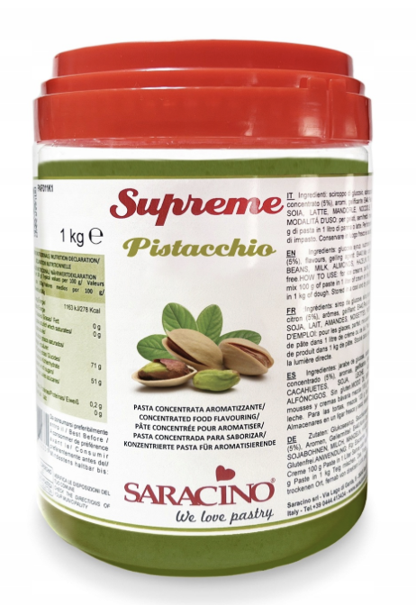Pasta pistacjowa to idealny dodatek do ciast, kremów, ganache, makaroników, babeczek, ciasteczek, owsianek, placuszków, lodów, śmietany i jogurtów. Ten krem pozwoli Ci na szybkie i proste stworzenie słodkości w ulubionym smaku. Intensywność smaku zależy od ilości dodanej pasty.