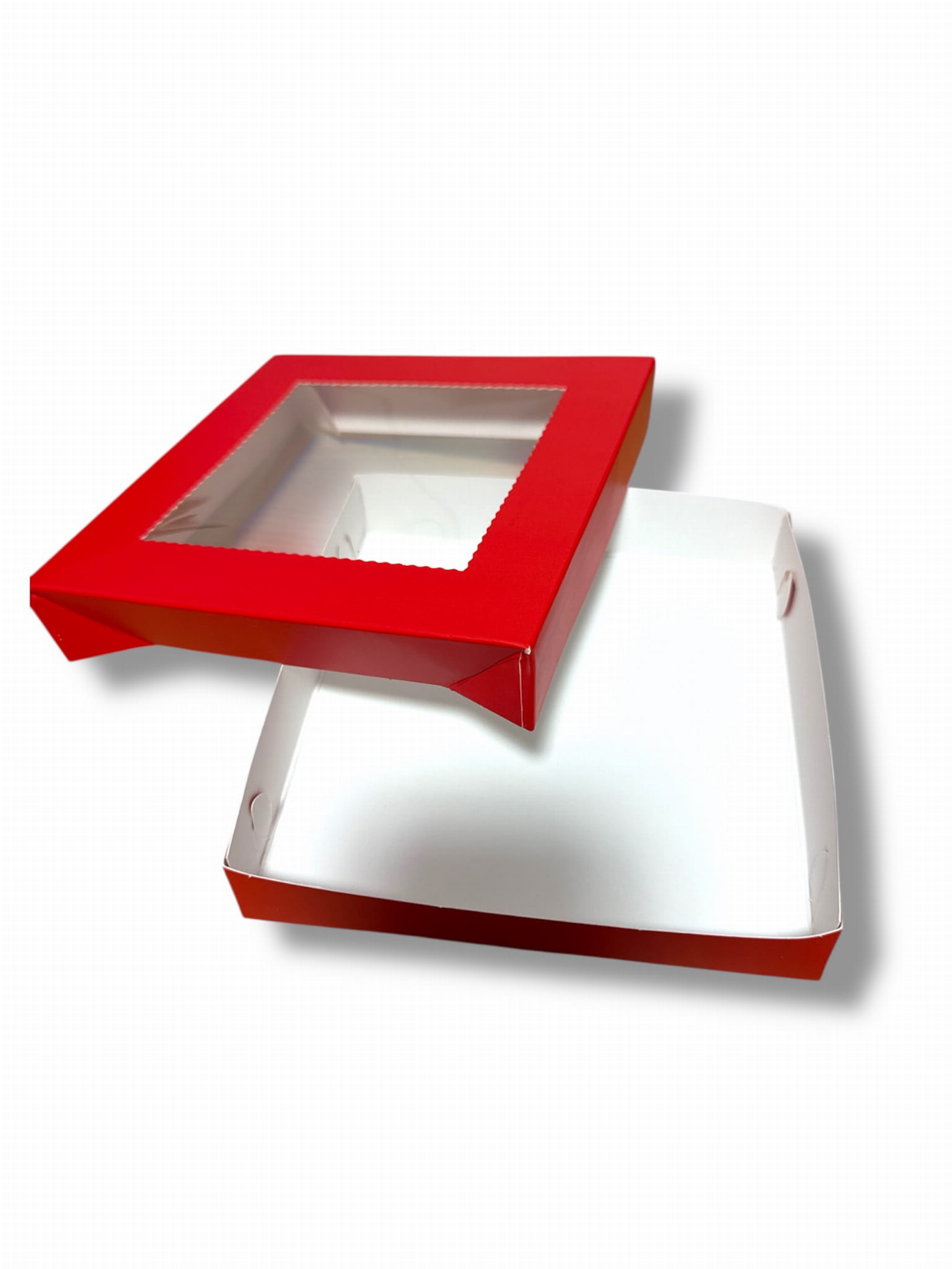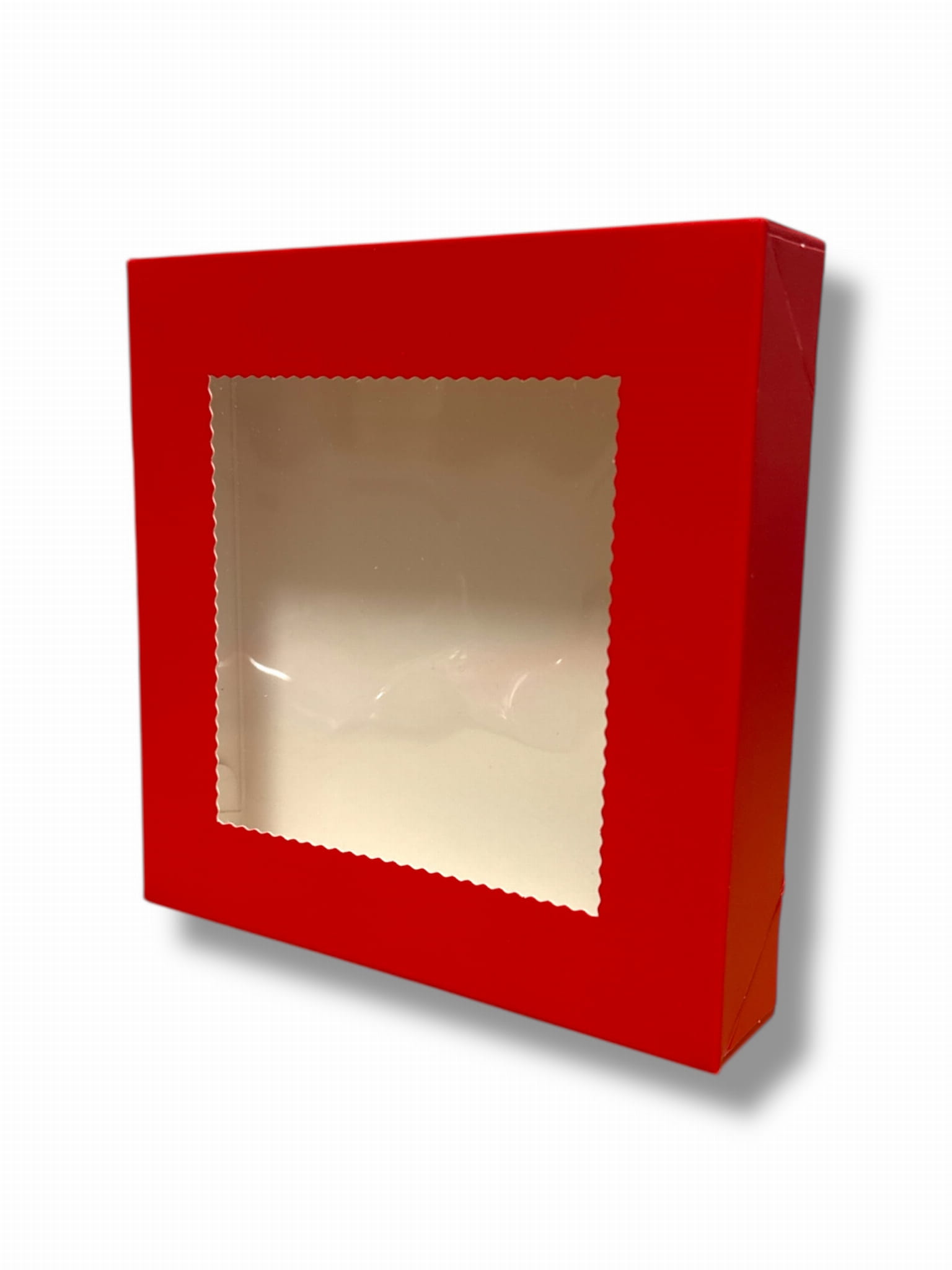 Pudełko na pierniczki, ciastka 15x15x3cm z oknem CZERWONE