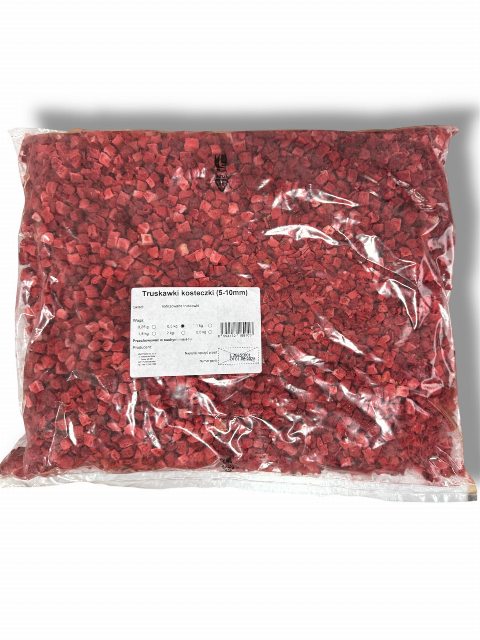 Duża paczka - 0,5kg truskawki liofilizowanej w kostce (5-10mm).