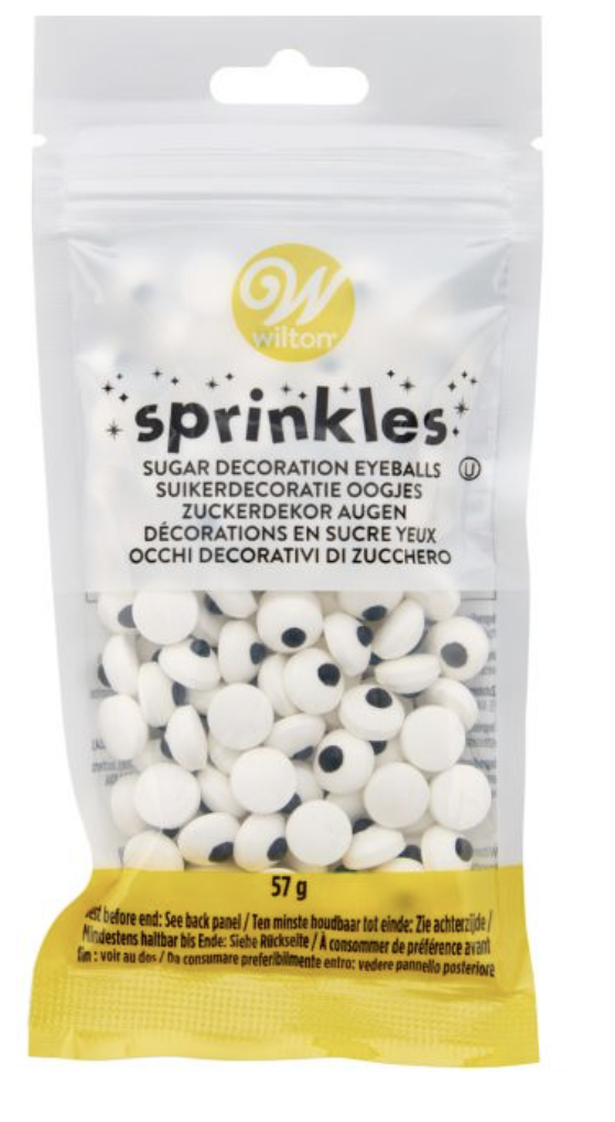 Te cukierkowe gałki oczne Wilton o wadze 57 g to niezbędny gadżet dla dekoratorów tortów, którzy chcą dodać deserom charakteru i kreatywności. Idealne do tworzenia buźek na babeczkach, cake popsach i innych wypiekach.